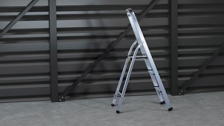 The Step Ladder is lightweight but sturdy and has broad flat steps to prevent slippage. It is hinged at the top making it free-standing.